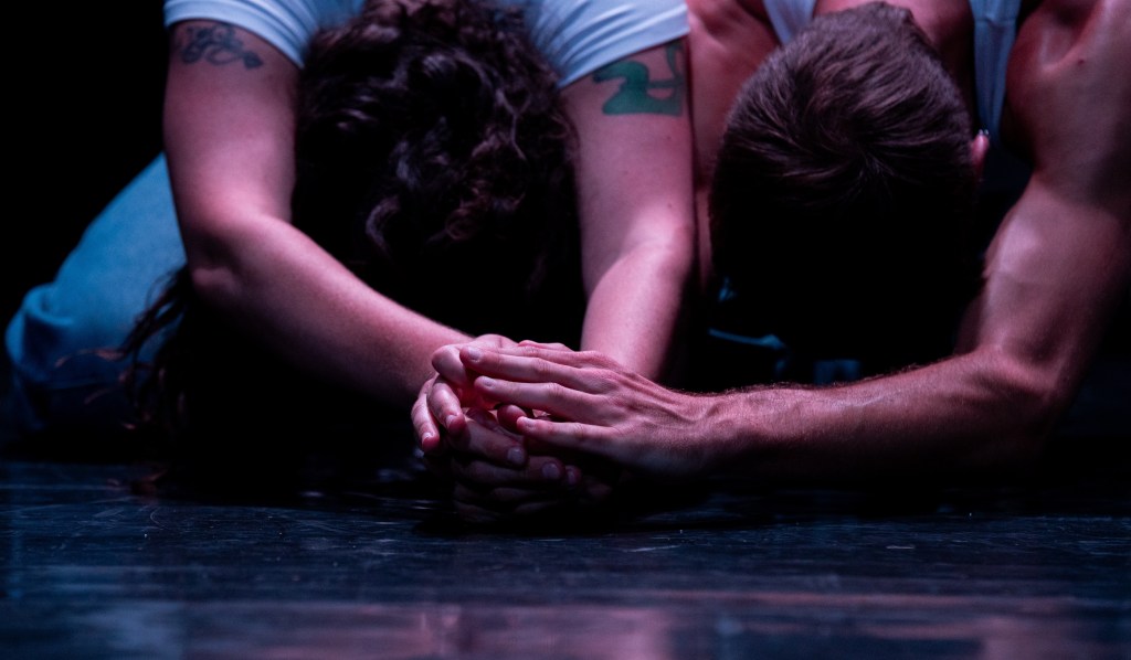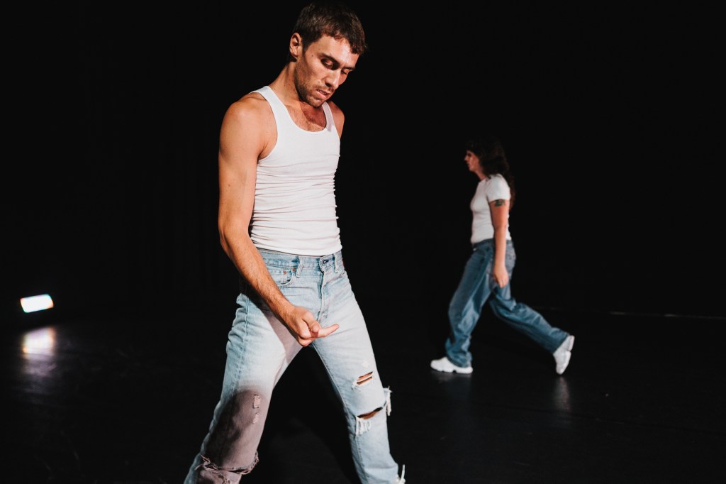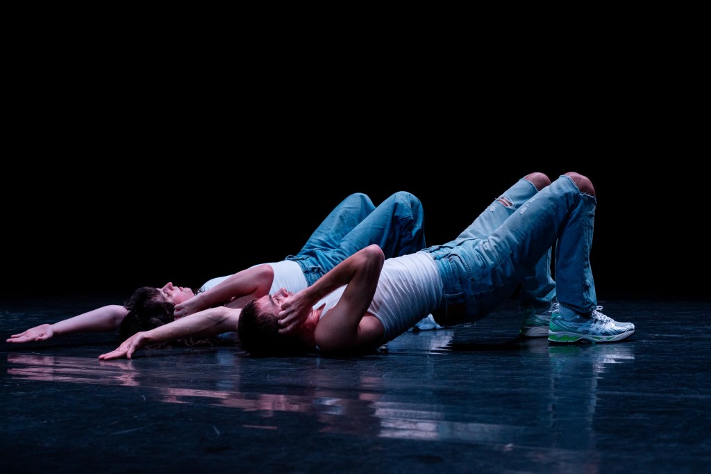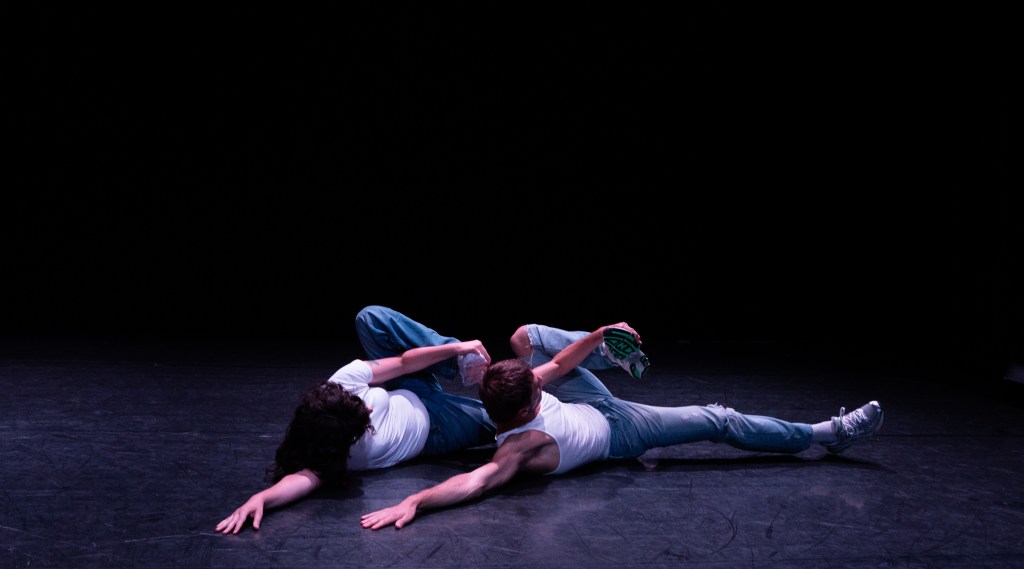 Maria Silk and Théophylle Dcx’s duet On the Floor dives into the queer legacies of 1980s dance music. Entering altered states induced by dance, the duo travels into an inner space of hedonism, escape, and discipline, guided by the four-on-the-floor rhythm of disco and hi-NRG music. Rooted in the connections between this music and the early days of the HIV/AIDS epidemic, On the Floor stages the power of nightlife as a way of mourning, remembering, and surviving. Harnessing the blazing intensity of dance music in moments of crisis, Silk and Dcx call on queer ghosts and ancestors for ways of staying together through exhaustion and repetition.